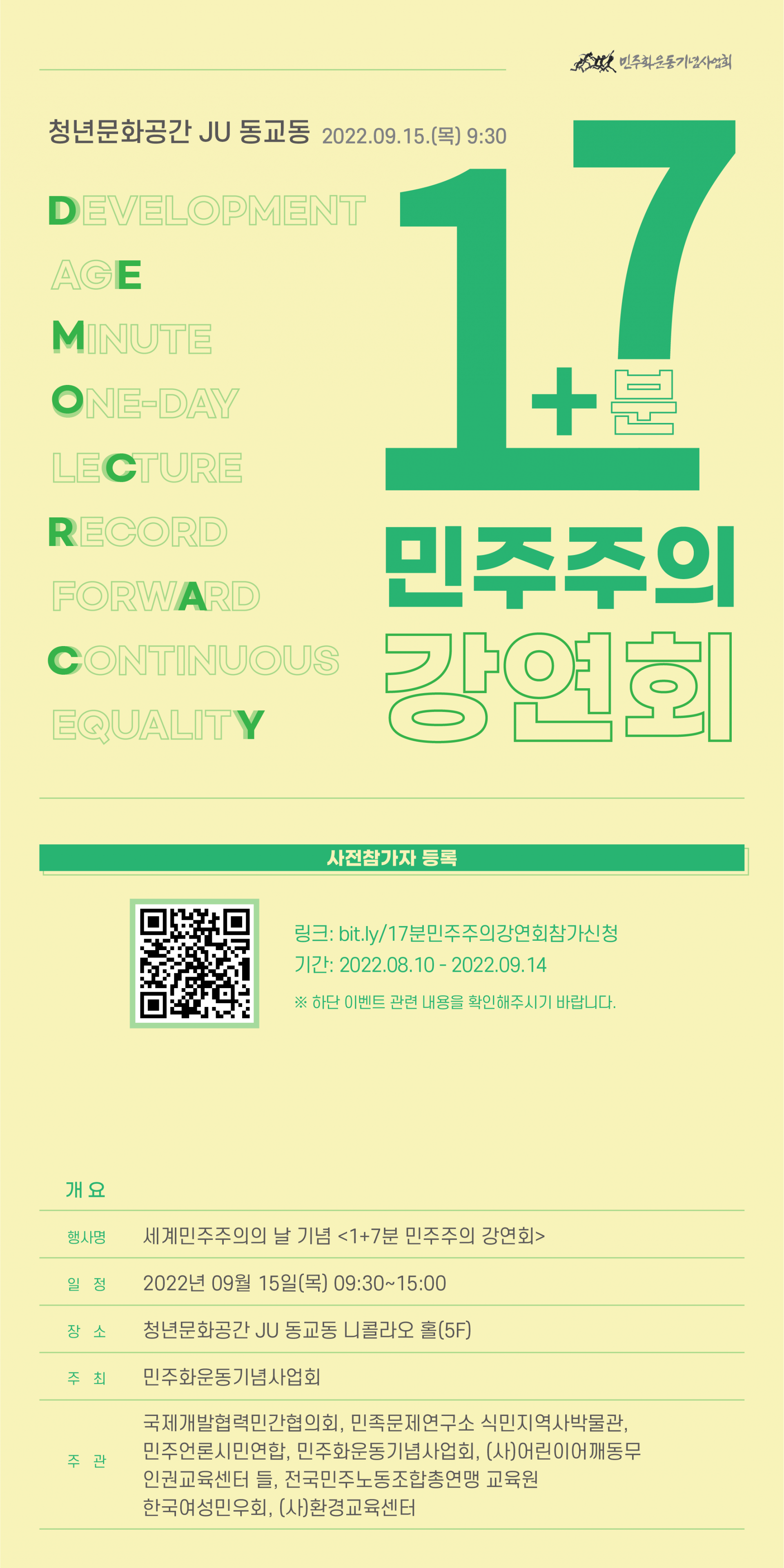 행사명 : 세계민주주의의날 기념 <1+7분 민주주의 강연회>