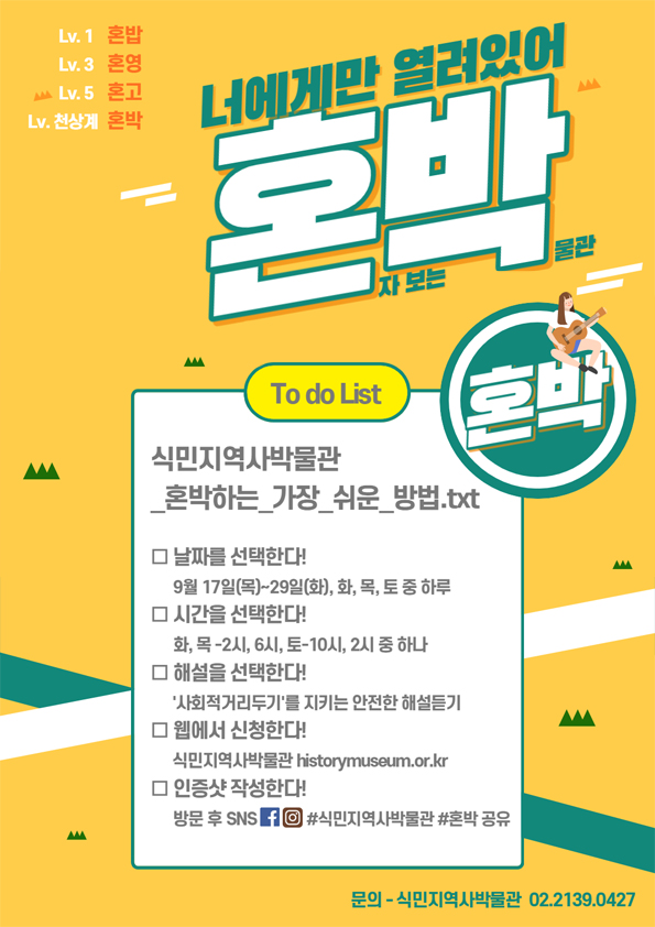 약속 : ① 관람 설문지 작성 ② 관람 인증샷 #식민지역사박물관 #혼박 SNS(페이스북, 인스타그램) 공유