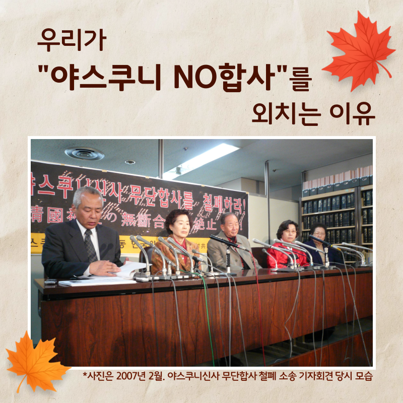 그리고 곧 국내에서도 야스쿠니 무단 합사 철폐 소송이 진행됩니다.